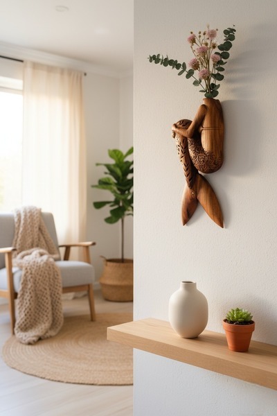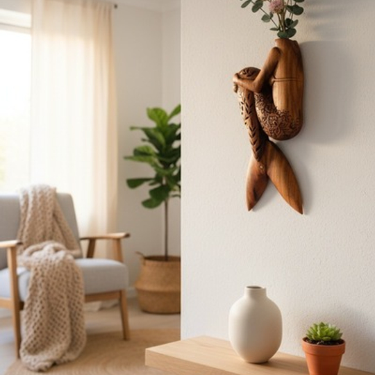 Siren – Hand-Carved Wooden Mermaid Wall Vase
